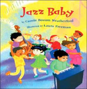 It starts out with an assembly of ethnically diverse children ready to make music and dance. Some of them swing and sway, jiggle and wiggle, bounce and boogie while the rest are working the instruments. The verses are small and catchy. They mention the trumpet, drum, piano and bass â the simplest introductory presentation of the most important components of Jazz music. The last spread shows a tired group plopped on the floor with droopy heads and stretched out legs. The author writes – When I wrote this swinging nursery rhyme, I set out to write a jazz pat-a-cake. And I hear the diaper and toddler find the rhythm infectious. Yes! Just saying Jazz baby Jazz baby is energizing for all ages!